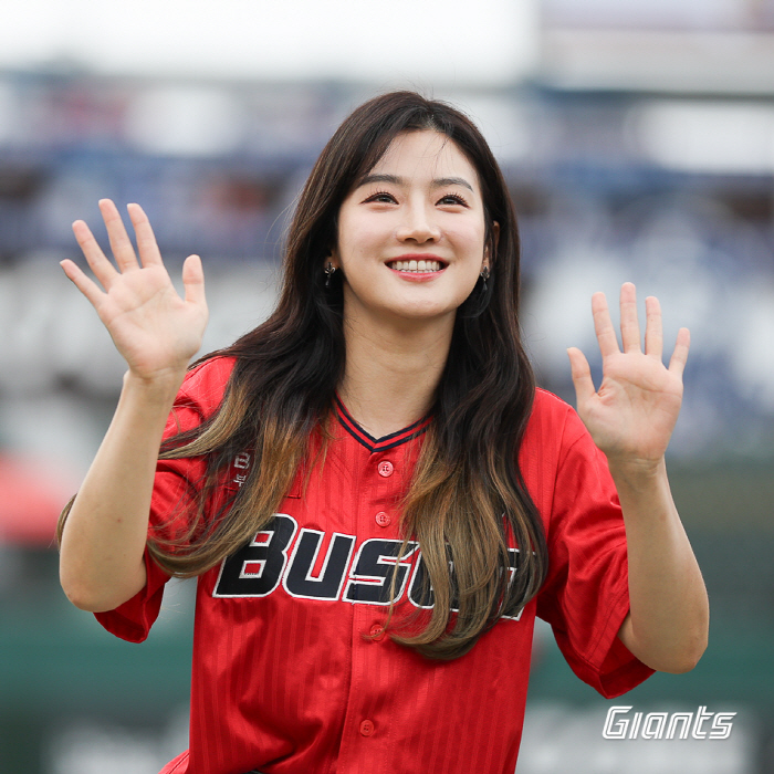 박주현은 지난 9일 부산 사직구장에서 열린 SSG 랜더스와의 더블헤더 1차전 시구에 나섰다. 빨간색 동백 유니폼을 입고 등장한 그는 부산 야구팬들의 뜨거운 환호에 상큼한 시구로 화답했다.