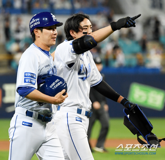 구자욱이 더그아웃에 들어서자, 이병규 수석은 마치 자신이 역전 적시타를 친 거처럼 기뻐하며 환호했다.