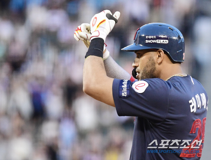 15일 잠실야구장에서 열린 LG와 롯데의 시즌 8차전 경기. 6회 1타점 적시타 날린 롯데 레이예스. 잠실=송정헌 기자songs@sportschosun.com/2024.06.15/