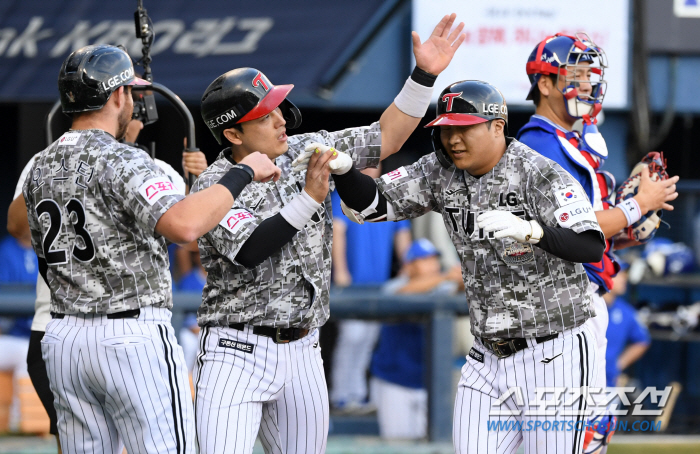 25일 잠실구장에서 열린 LG 트윈스와 삼성 라이온즈의 경기. 2회말 무사 1,2루 LG 문보경이 스리런포를 날린 뒤 환호하고 있다. 잠실=박재만 기자 pjm@sportschosun.com/2024.06.25/