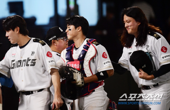 4회말에는 1사 1루에서 박승욱이 우중간을 가르는 동점 1타점 2루타를 날렸다. 이후 손성빈이 1타점 적시타를 날리며 4대 3승으로 승부를 뒤집었다.
