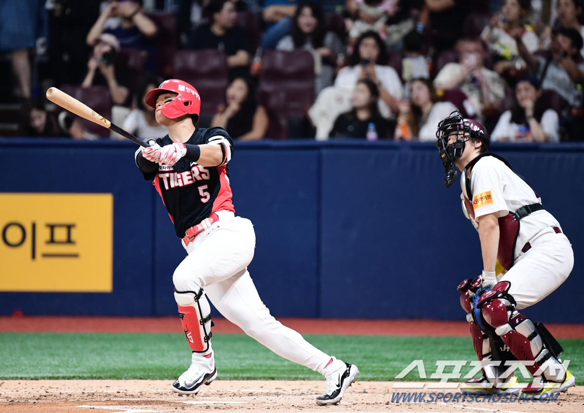 [고척=스포츠조선 송정헌 기자] KIA 타이거즈 김도영이 시즌 27호 투런홈런을 날렸다.