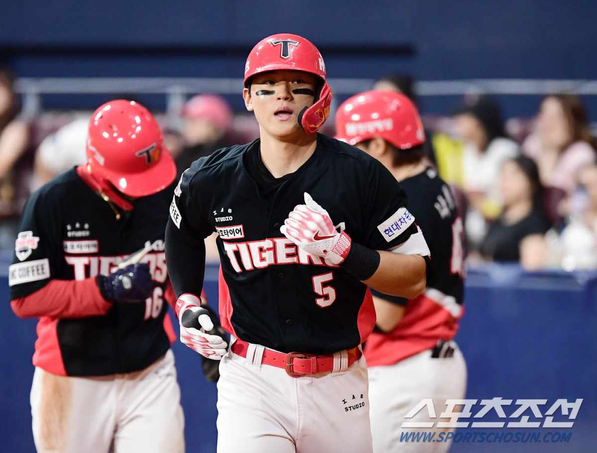 3회 두 번째 타석. 1사 후 최원준이 볼넷으로 출루했다. 1사 1루에서 김도영은 KIA 선발 김인범의 3구 126km 슬라이더를 잡아당겨 좌중간 펜스를 넘기는 홈런 비거리 125m 홈런을 날렸다.
