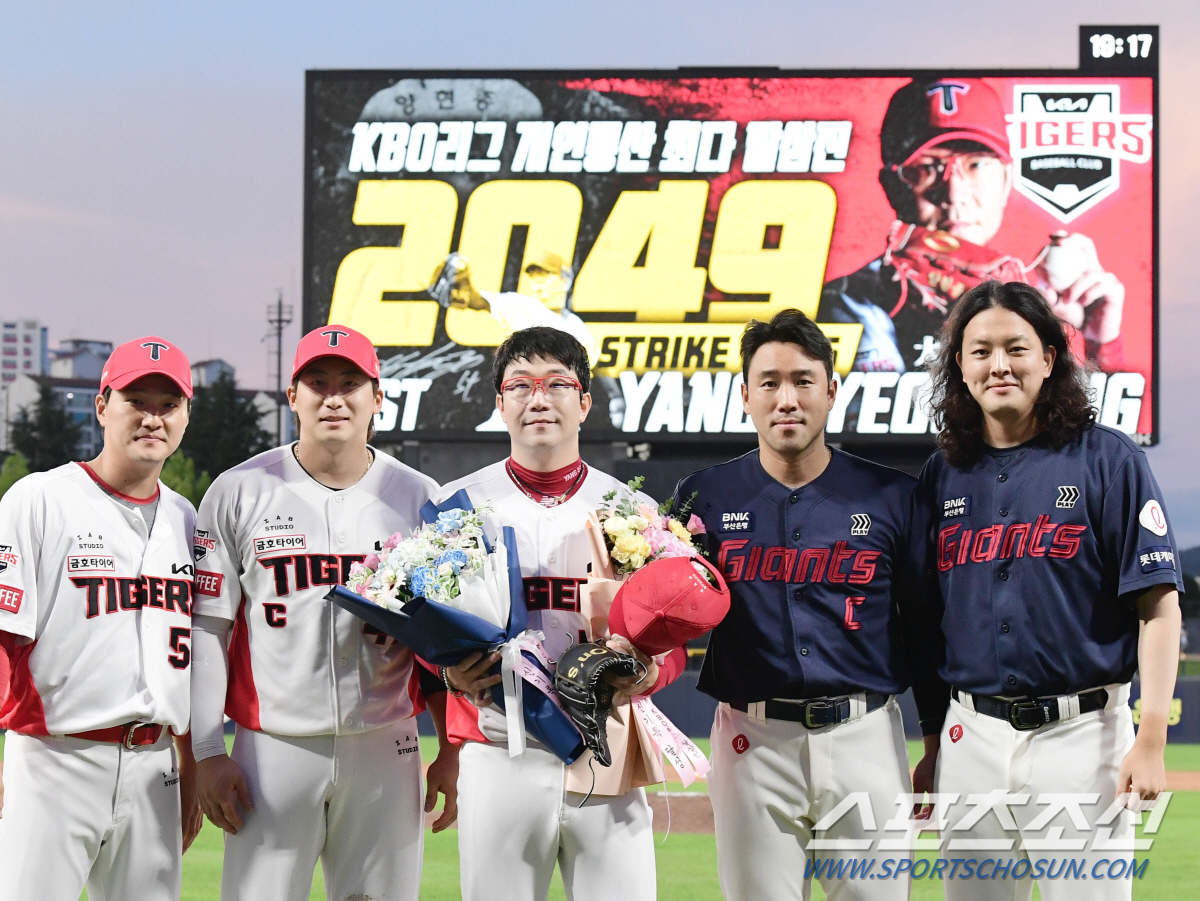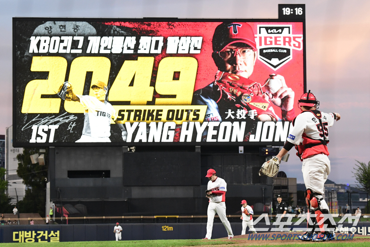 양현종은 롯데를 상대로 1회 황성빈 삼진, 2회 나승엽 삼진, 3회 윤동희를 삼진으로 잡아내며 대기록을 작성했다.