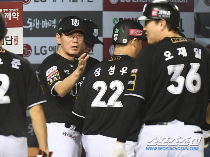 28일 서울 잠실구장에서 열린 KT-LG전. 10회 연장 승부에서 8대4로 승리한 KT 이강철 감독이 선수들을 맞이하고 있다. 잠실=정재근 기자 cjg@sportschosun.com/2024.8.28/