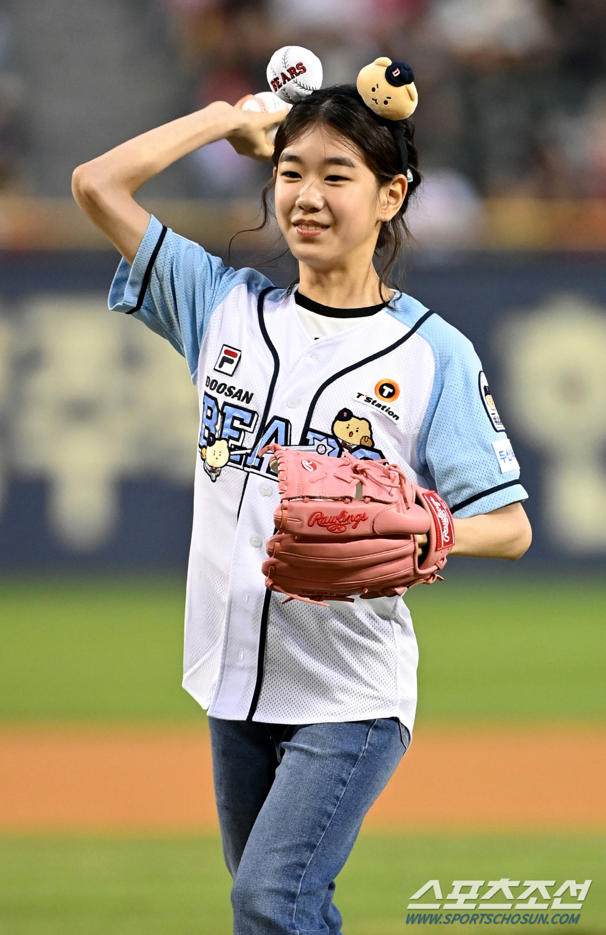19일 잠실야구장에서 열린 KIA와 두산의 경기, 아역배우 박소이가 시구를 하고 있다. 잠실=허상욱 기자 wook@sportschosun.com/2024.09.19/