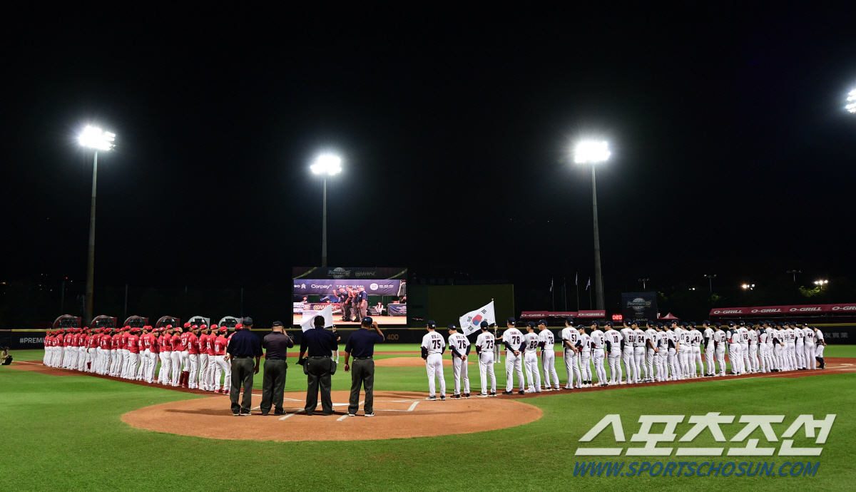 10일 오후 프리미어12 야구대표팀이 대만 타이베이 티옌무야구장에서 대만 웨이취안 드래곤즈와 연습경기를 가졌다. 경기를 준비하고 있는 야구대표팀. 타이베이(대만)=송정헌 기자songs@sportschosun.com/2024.11.10/