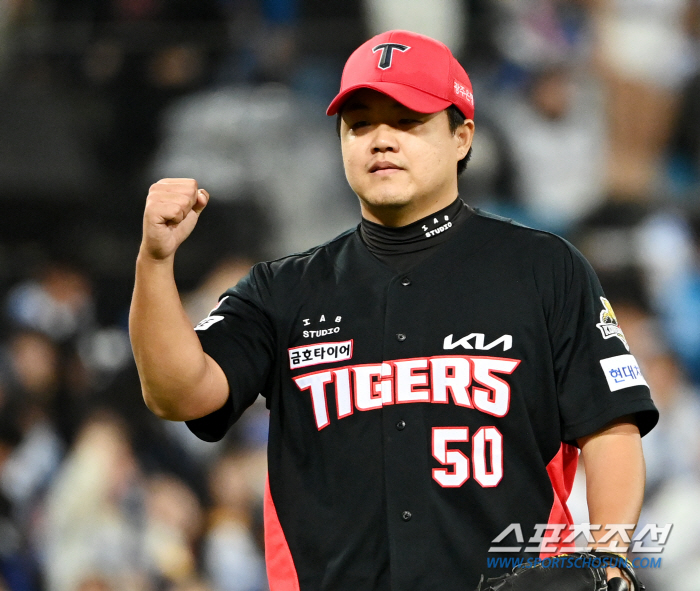 25일 대구삼성라이온즈파크에서 열린 KIA와 삼성의 한국시리즈 3차전, 6회말 2사 3루의 위기를 넘긴 KIA 장현식이 주먹을 불끈 쥐고 있다. 대구=허상욱 기자 wook@sportschosun.com/2024.10.25/
