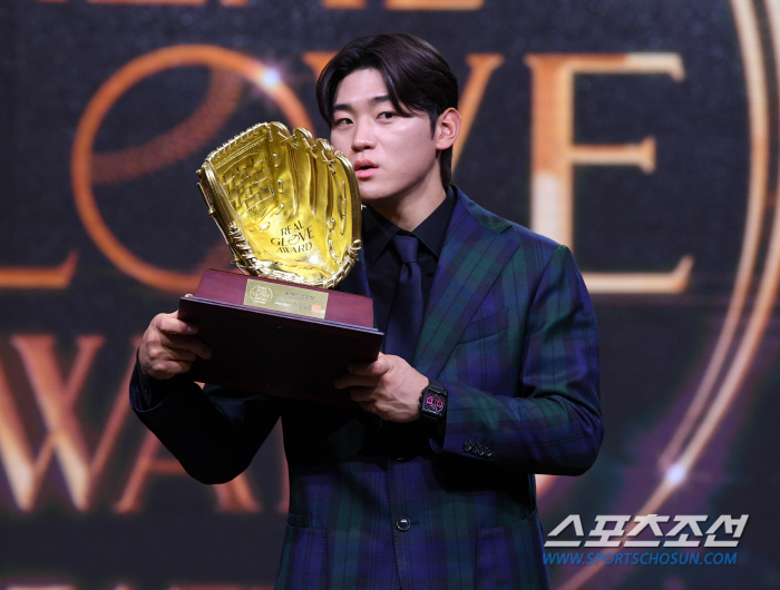 2024 리얼글러브 어워드가 1일 서울 용산구 한남동 그랜드하얏트 서울에서 열렸다. 올해의 선수상을 수상한 KIA 김도영이 기념촬영을 하고 있다. 박재만 기자 pjm@sportschosun.com/2024.12.01/