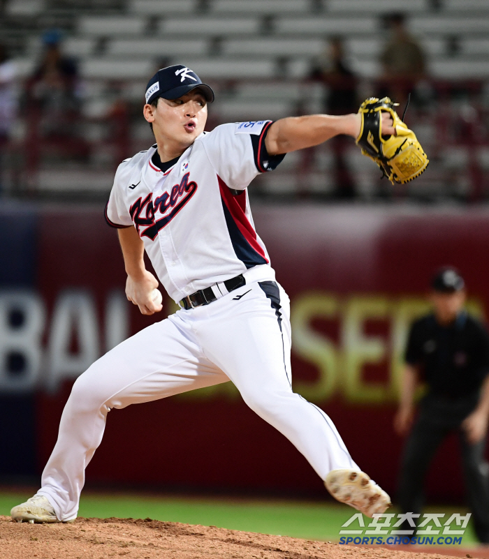 16일 프리미어12 야구대표팀이 대만 타이베이 티얀무구장에서 도미니카공화국과 경기를 펼쳤다. 투구하는 조병현. 타이베이(대만)=송정헌 기자songs@sportschosun.com/2024.11.16/