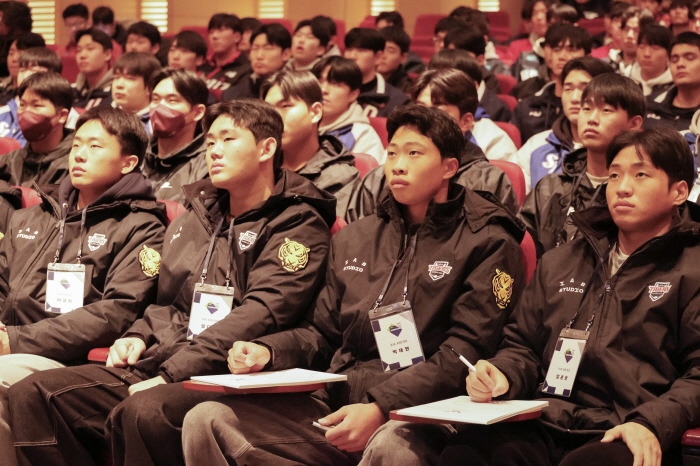 이날 오리엔테이션에선 박재호 본지 편집국장의 미디어 소통법 강연, KIA 최지민-NC 김휘집이 나선 '선배와의 대화', KBO 의무위원 한덕현 중앙대학교 교수의 셀프 멘털 코칭, 구자욱 트레이너의 부상방지 교육 등이 뒤따랐다. 이날 현장에는 데뷔 시즌을 앞둔 10개 구단 소속 신인과 육성 선수 총 130여명이 참석했다.