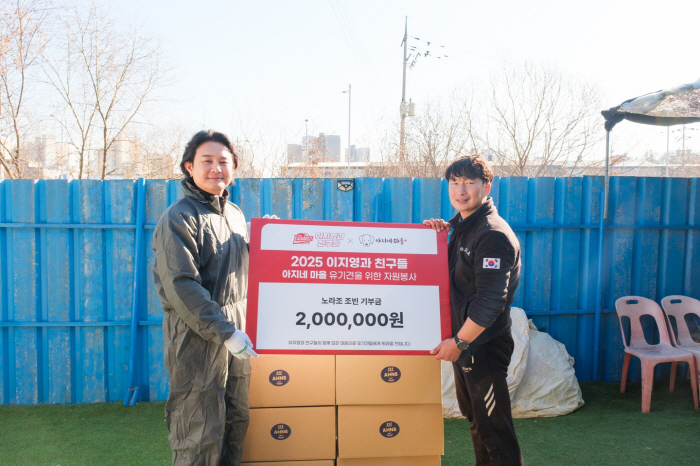 SSG 랜더스 포수 이지영은 지난 17일 경기도 김포시에 위치한 유기견 보호소 '아지네 마을'을 찾아 봉사활동을 하고 기부금을 전달했다.
