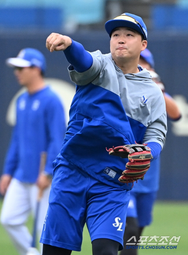 삼성 전병우가 캐치볼을 하고 있다. 대구=허상욱 기자 wook@sportschosun.com/2024.10.15/