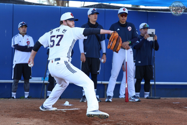두산이 새로 뽑은 특급 좌완 외인 콜 어빈의 호주 첫 라이브피칭 최고 구속이 150㎞였다. 빅리그 통산 28승에 지난해까지 6승을 거둔 현역 메이저리거. 올시즌 최고 좌완 외인투수로 기대를 모으는 투수다.