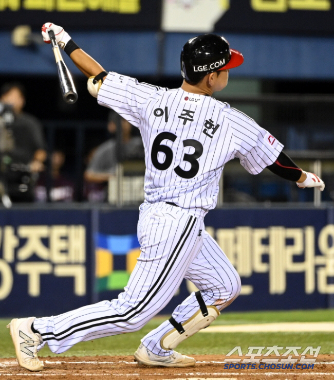 26일 잠실야구장에서 열린 키움과 LG의 경기, 5회말 무사 1루 LG 이주헌이 안타를 치고 있다.잠실=허상욱 기자 wook@sportschosun.com/2024.09.26/
