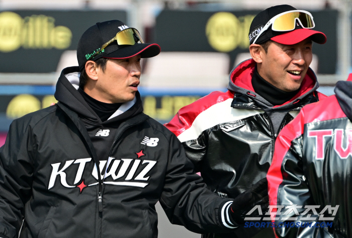 은퇴 후 올 시즌부터 퀄리티 컨트롤 코치로 제2의 야구 인생을 시작한 박경수 코치는 LG 시절 함께했던 김광삼 코치와 눈이 마주치자 활짝 웃으며 반갑게 인사를 나눴다.