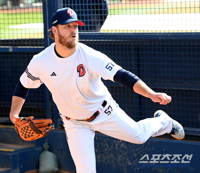 '변화구 각 미쳤네' 두산 콜 어빈, 잠실 불펜에서 무력시위...27개 공 던지며 구위 점검[잠실 현장]