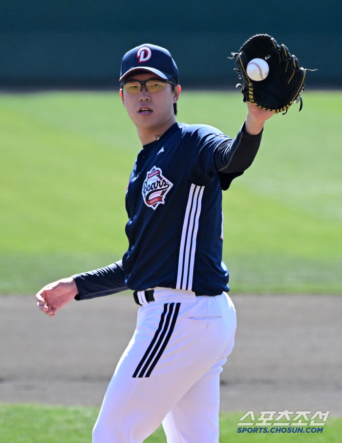 26일 일본 미야자키 선마린스타디움에서 열린 두산 베어스와 세이부 라이온스의 경기. 두산 김유성이 숨을 고르고 있다. 미야자키(일본)=박재만 기자 pjm@sportschosun.com/2025.02.26/