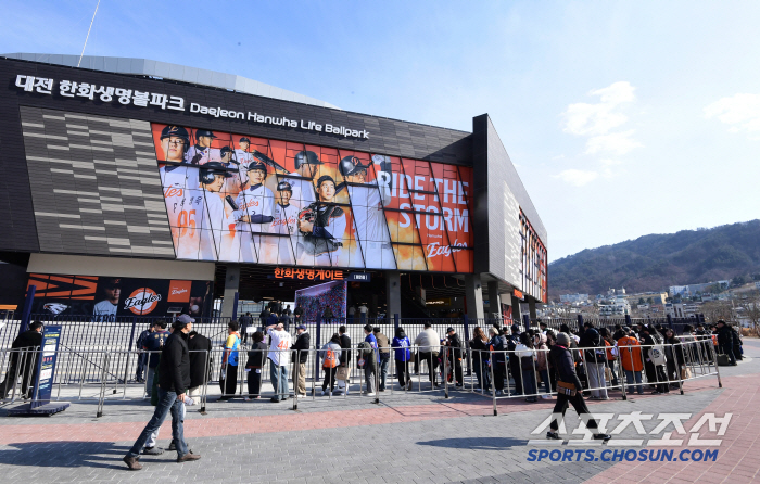 신축구장 시범경기 첫째 날. 한화생명볼파크 1만 1천 관중석은 매진을 기록했다. 아직 일부 시설물 공사가 마무리되지 않아 모든 관중석을 오픈할 수는 없었지만, 한화는 삼성과 2연전 모두 매진을 기록하며 신축구장에 대한 팬들의 뜨거운 관심을 받고 있다.