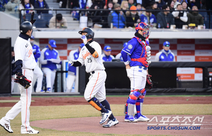 정규시즌은 아니지만 신축구장 첫 홈런의 주인공은 한화 김태연이었다. 1회말 선두타자로 나선 김태연은 삼성 선발 백정현을 상대로 선제 솔로포를 날리며 신축구장 첫 경기를 자축했다.