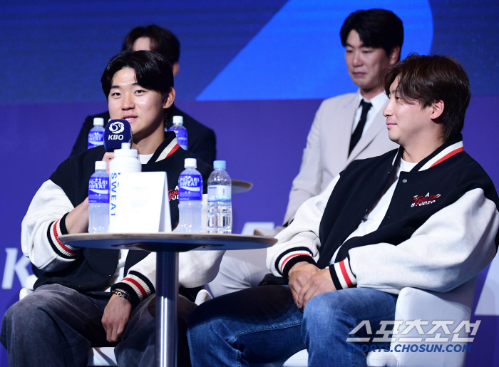 20일 서울 잠실 롯데호텔월드 크리스탈볼룸에서 2025 KBO리그 미디어데이가 열렸다. 미디어데이에 참석한 KIA 김도영, 나성범. 잠실=송정헌 기자songs@sportschosun.com/2025.03.20/