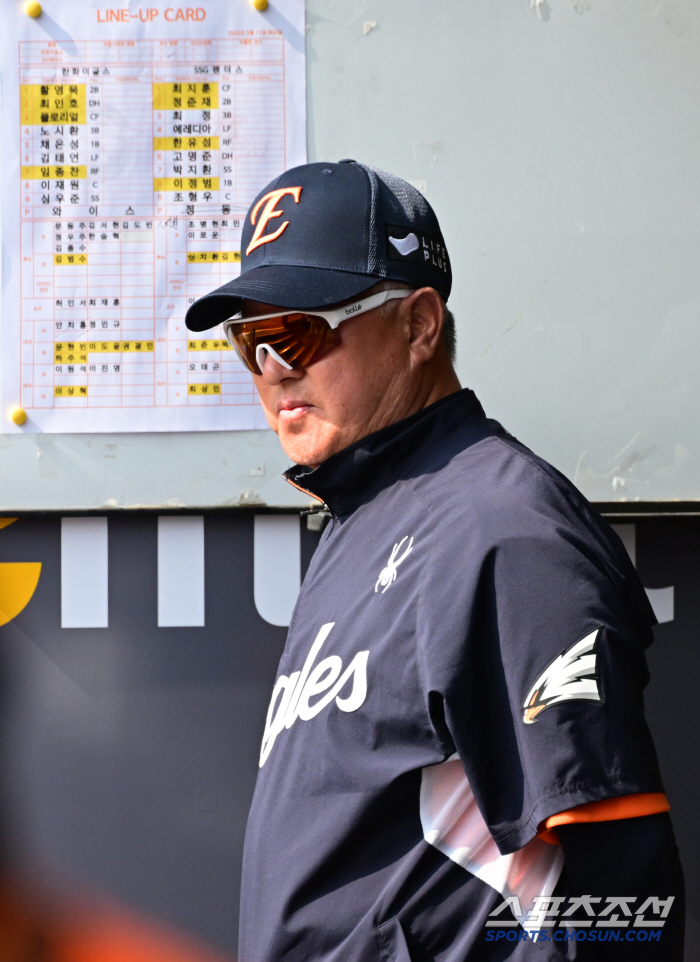 11일 인천 SSG랜더스필드에서 열린 SSG 랜더스와 한화 이글스의 시범경기. 한화 김경문 감독이 경기를 지켜보고 있다. 인천=박재만 기자 pjm@sportschosun.com/2025.03.11/