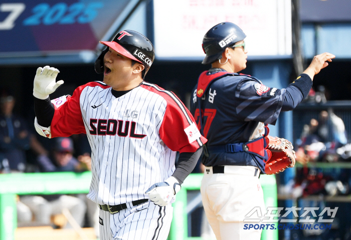 23일 잠실구장에서 열린 LG 트윈스와 롯데 자이언츠의 경기. 5회말 2사 LG 오스틴이 솔로포를 날린 뒤 환호하고 있다. 잠실=박재만 기자 pjm@sportschosun.com/2025.03.23/