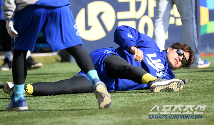 베테랑 강민호는 잠실구장 그라운드가 마치 자신의 안방인 것처럼 편한 표정으로 몸을 풀었다.
