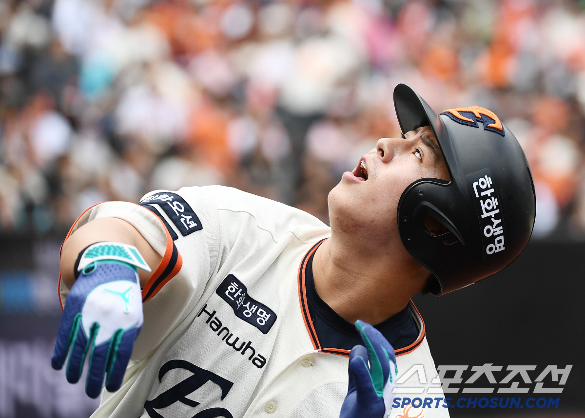 20일 대전 한화생명볼파크에서 열린 NC-한화전. 2회말 무사 노시환이 솔로포를 친 후 관중석으로 기념 인형을 던지고 있다. 대전=정재근 기자 cjg@sportschosun.com