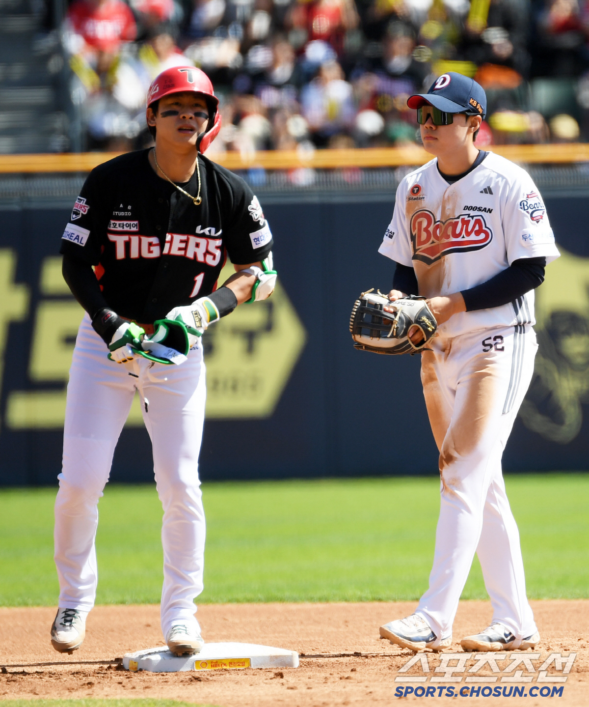 20일 잠실구장에서 열린 두산 베어스와 KIA 타이거즈의 경기. 3회초 1사 KIA 박찬호가 안타를 날린 뒤 환호하고 있다. 잠실=박재만 기자 pjm@sportschosun.com