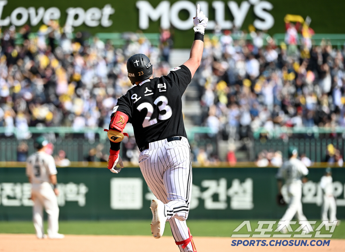 20일 인천SSG랜더스필드에서 열린 SSG와 LG의 경기, 4회초 무사 1,3루 LG 오스틴이 3점홈런을 치고 환호하고 있다. 인천=허상욱 기자wook@sportschosun.com
