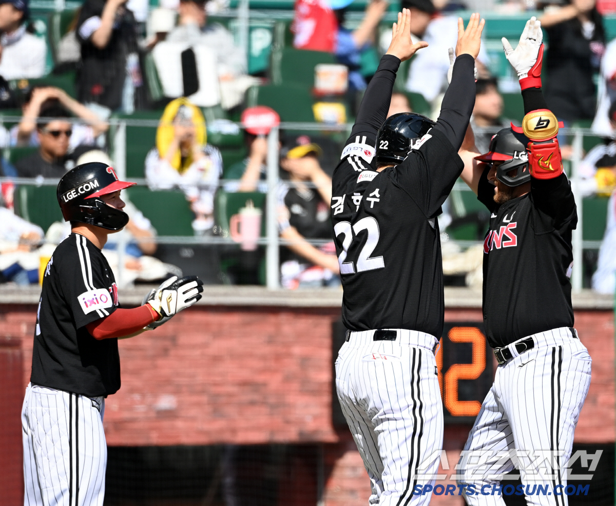 20일 인천SSG랜더스필드에서 열린 SSG와 LG의 경기, 4회초 무사 1,3루 LG 오스틴이 3점홈런을 치고 환호하고 있다. 인천=허상욱 기자wook@sportschosun.com