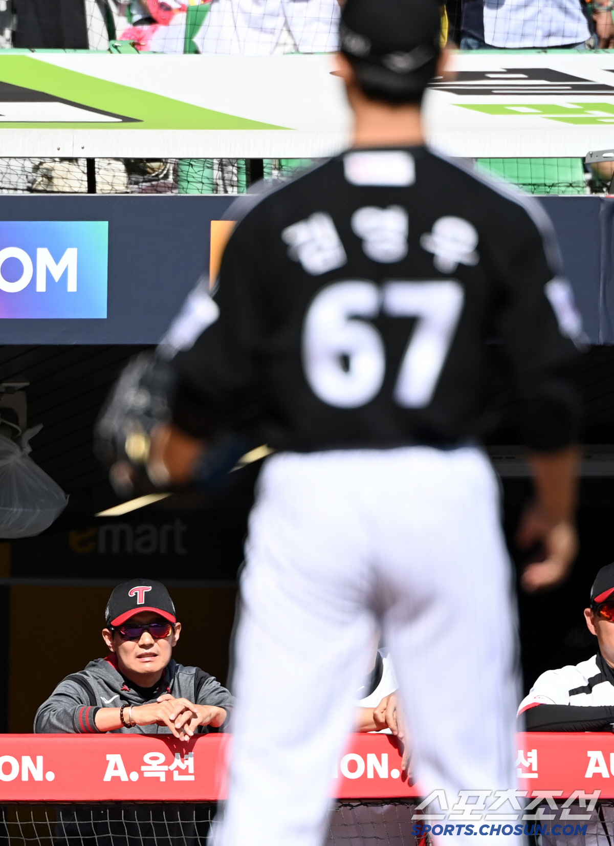 20일 인천SSG랜더스필드에서 열린 SSG와 LG의 경기, LG 염경엽 감독이 5회말 1사 3루 SSG 이지영의 스트라이크 아웃 낫아웃때 공이 빠져 실점한 김영우를 보며 아쉬워하고 있다. 인천=허상욱 기자wook@sportschosun.com