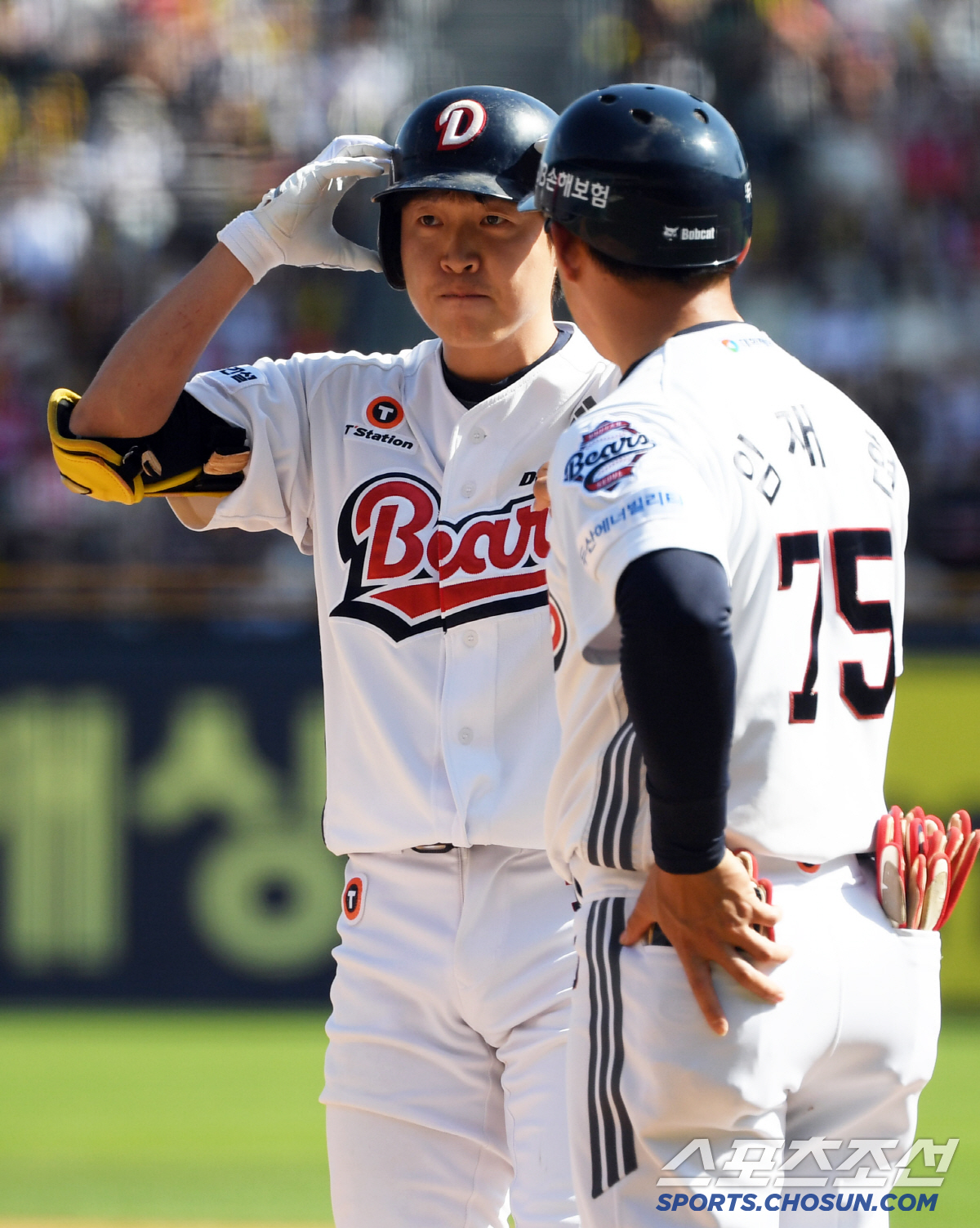 20일 잠실구장에서 열린 두산 베어스와 KIA 타이거즈의 경기. 5회말 무사 1루 두산 정수빈이 안타를 날린 뒤 환호하고 있다. 잠실=박재만 기자 pjm@sportschosun.com