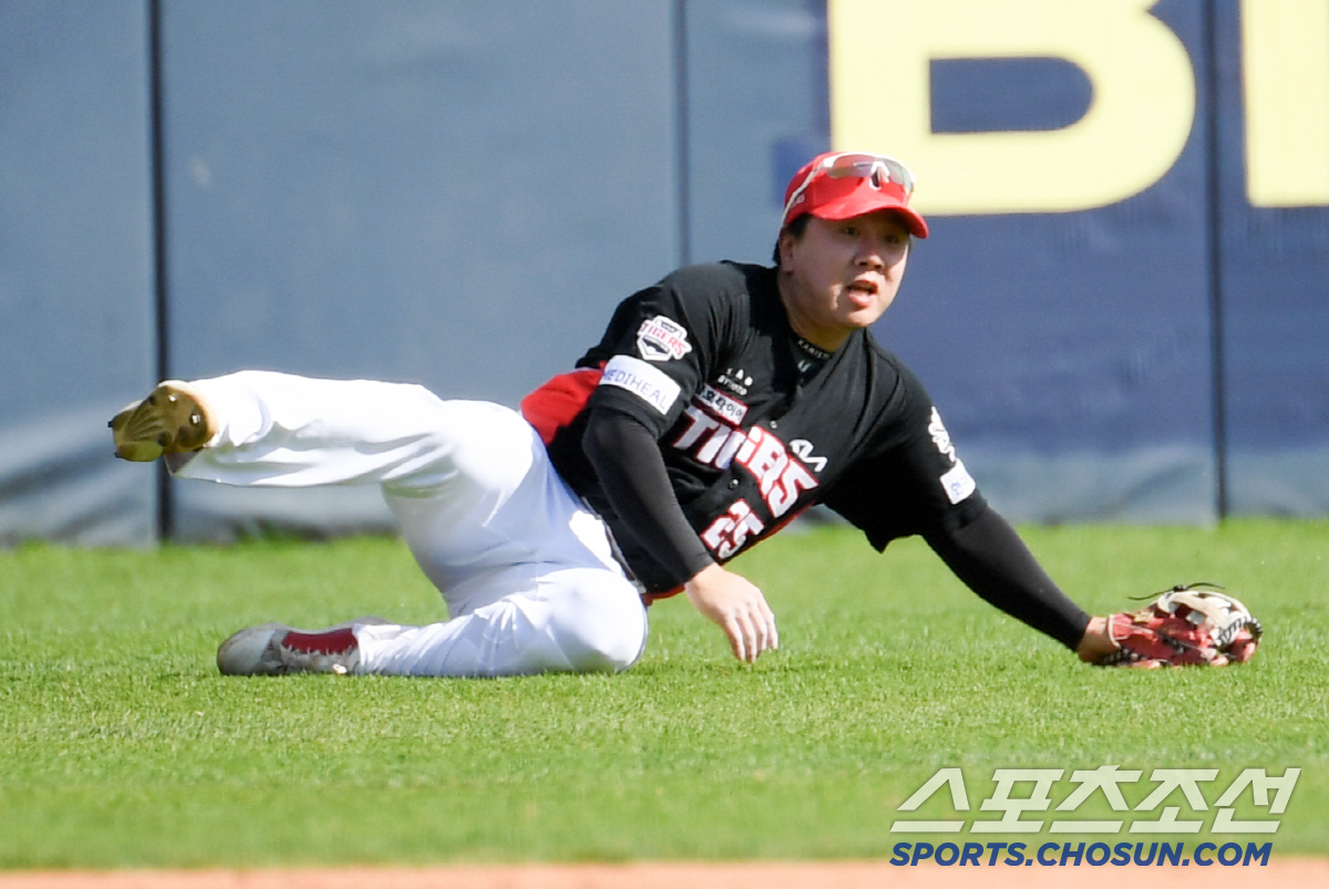 20일 잠실구장에서 열린 두산 베어스와 KIA 타이거즈의 경기. 5회말 무사 1루 두산 정수빈의 타구를 KIA 이우성이 원바운드 캐치하고 있다. 잠실=박재만 기자 pjm@sportschosun.com