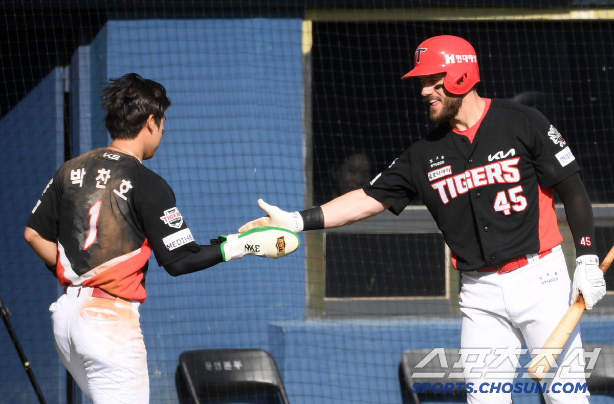 [포토] 박찬호-위즈덤 '승부는 다시 원점'