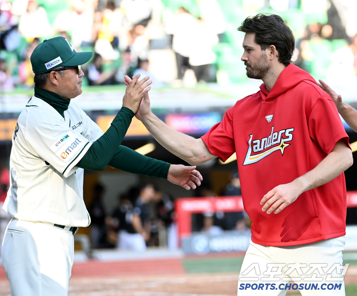 20일 인천SSG랜더스필드에서 열린 SSG와 LG의 경기, SSG가 9대3으로 승리하며 6연패에서 탈출했다. 승리의 기쁨을 나누는 승리투수 앤더슨과 이숭용 감독의 모습. 인천=허상욱 기자wook@sportschosun.com