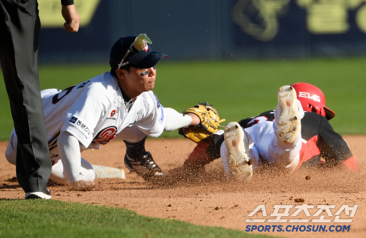 20일 잠실구장에서 열린 두산 베어스와 KIA 타이거즈의 경기. 8회초 1사 1루 KIA 박재현이 2루 도루에 실패하고 있다. 잠실=박재만 기자 pjm@sportschosun.com