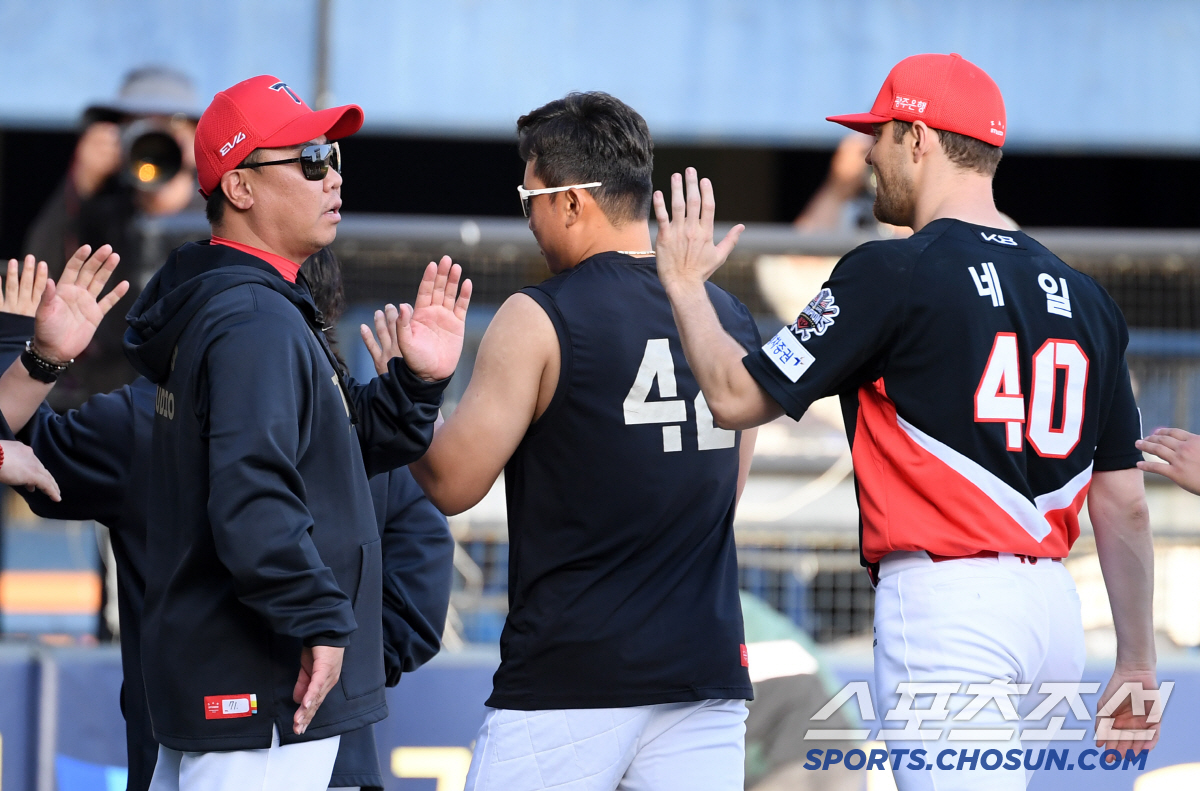 20일 잠실구장에서 열린 두산 베어스와 KIA 타이거즈의 경기. 승리한 KIA 이범호 감독과 네일이 기뻐하고 있다. 잠실=박재만 기자 pjm@sportschosun.com