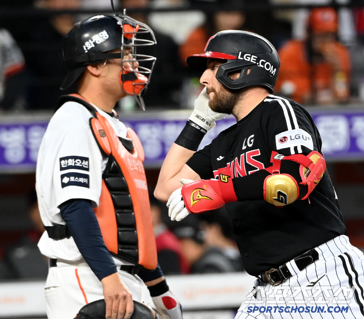 29일 대전한화생명볼파크에서 열린 LG와 한화의 경기, 3회초 2사 1루 LG 오스틴이 역전 2점홈런을 치고 기쁨을 나누고 있다. 대전=허상욱 기자wook@sportschosun.com