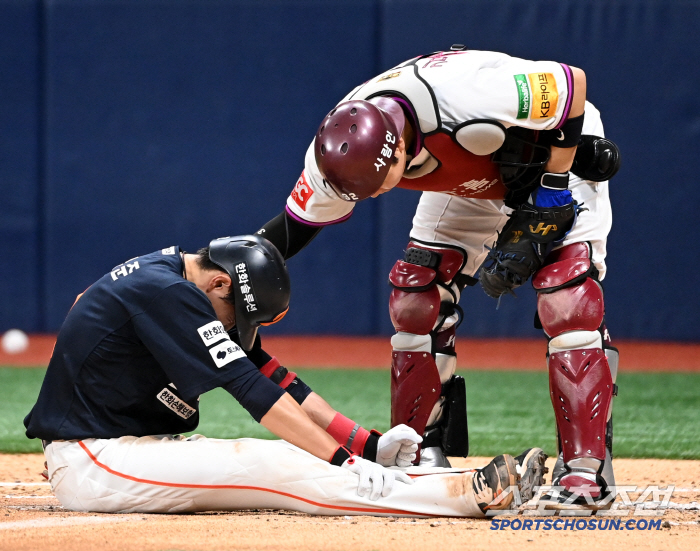 심우준은 10일 키움전 4회 상대 손현기의 투구에 왼 무릎 부위를 직격당했다. 통증이 심한 부위라 곧바로 경기에서 빠졌다.