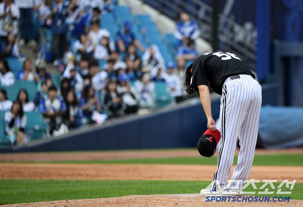11일 대구 라이온즈파크에서 열린 삼성 라이온즈와 LG 트윈스의 경기. LG 최채흥이 삼성 팬들을 향해 인사를 건네고 있다. 대구=박재만 기자 pjm@sportschosun.com