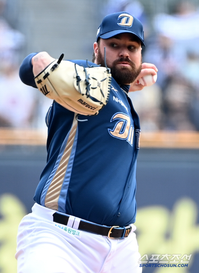 11일 잠실야구장에서 열린 NC와 두산의 더블헤더 1차전, NC 선발투수 로건이 역투하고 있다. 잠실=허상욱 기자wook@sportschosun.com/2025.05.11/