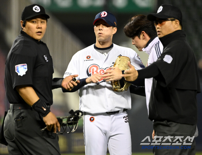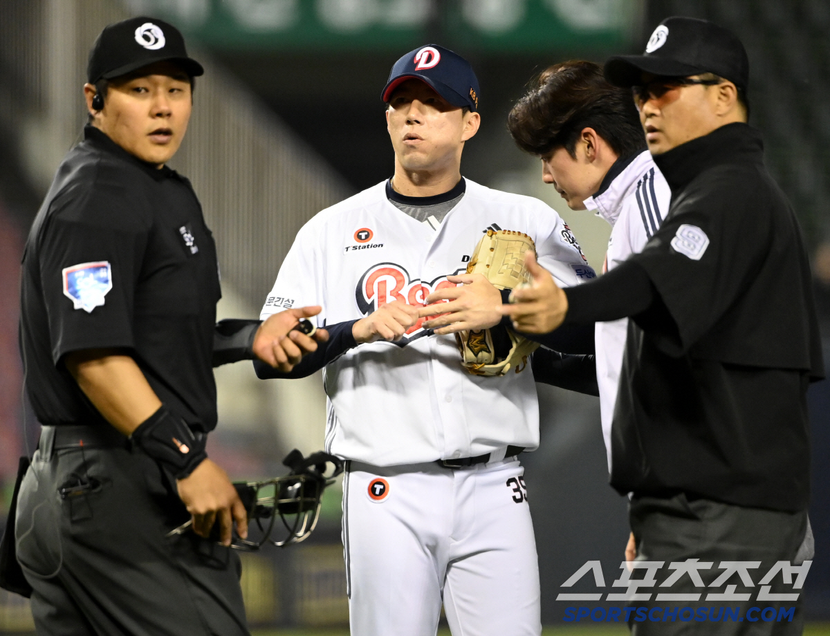 11일 잠실야구장에서 열린 NC와 두산의 더블헤더 2차전, 7회초 두산 고효준이 수비 도중 손가락 부상을 당해 교체되고 있다. 잠실=허상욱 기자wook@sportschosun.com