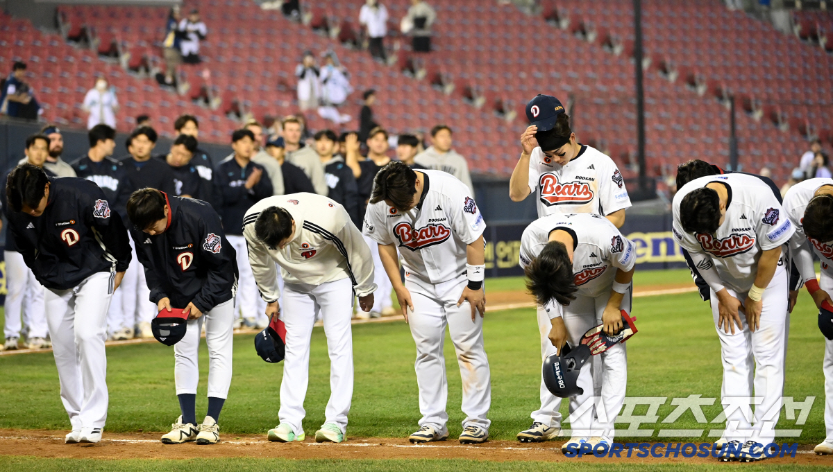 11일 잠실야구장에서 열린 NC와 두산의 더블헤더 2차전, NC가 5대2로 승리하며 7연승을 달렸다. 더블헤더 2패를 당한 두산 선수단이 아쉬움의 발걸음을 옮기고 있다. 잠실=허상욱 기자wook@sportschosun.com