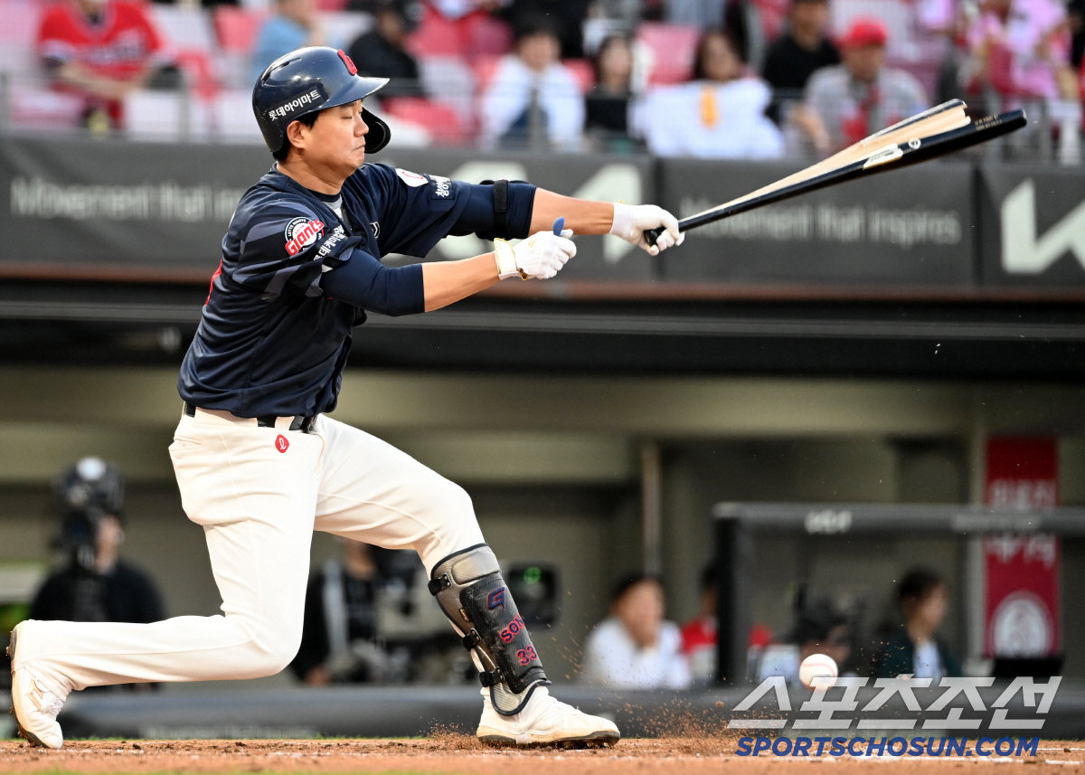 13일 광주KIA챔피언스필드에서 열린 롯데와 KIA의 경기, 2회초 무사 1루 롯데 손호영이 KIA 김도현의 투구를 받아치다 배트가 갈라지고 있다. 광주=허상욱 기자wook@sportschosun.com