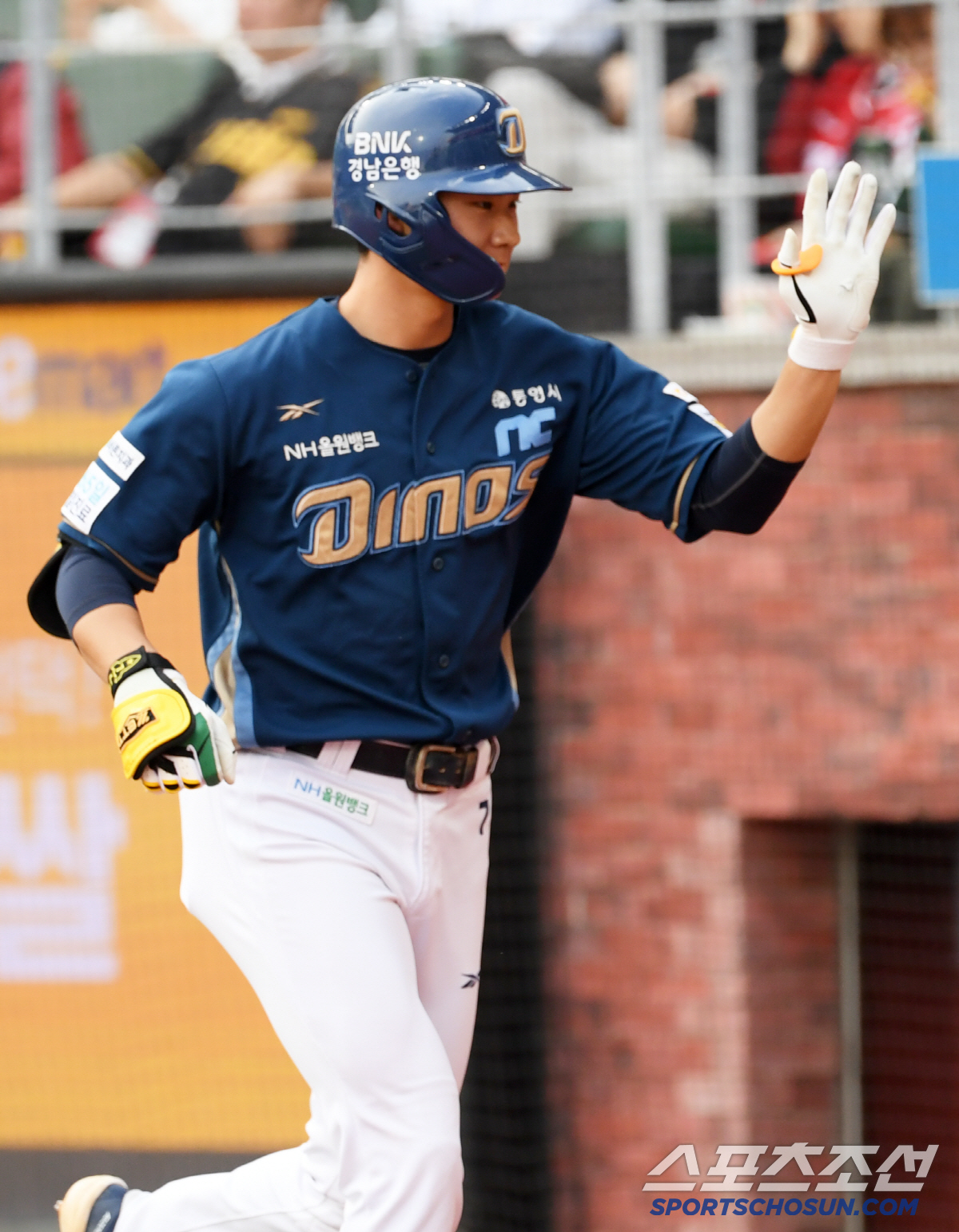 13일 인천 SSG랜더스필드에서 열린 SSG 랜더스와 NC 다이노스의 경기. 1회초 1사 NC 김주원이 솔로포를 날린 뒤 환호하고 있다. 인천=박재만 기자 pjm@sportschosun.com