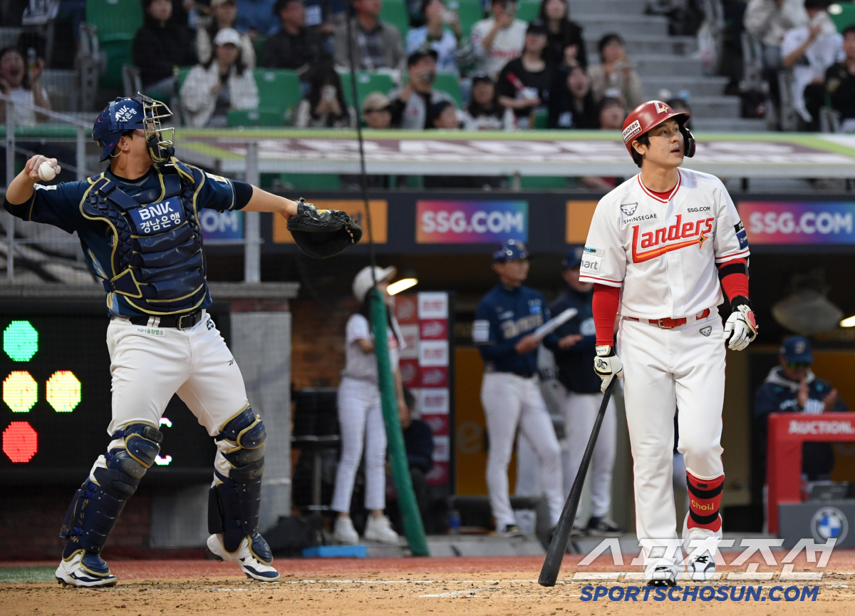 13일 인천 SSG랜더스필드에서 열린 SSG 랜더스와 NC 다이노스의 경기. 4회말 2사 SSG 최정이 삼진을 당하고 있다. 인천=박재만 기자 pjm@sportschosun.com