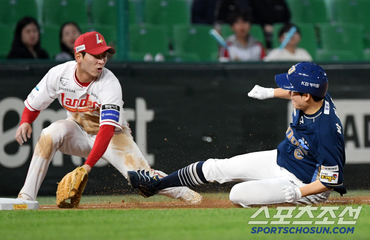 13일 인천 SSG랜더스필드에서 열린 SSG 랜더스와 NC 다이노스의 경기. 6회초 2사 NC 박민우가 안타를 날린 뒤 3루를 파고들고 있다. 인천=박재만 기자 pjm@sportschosun.com