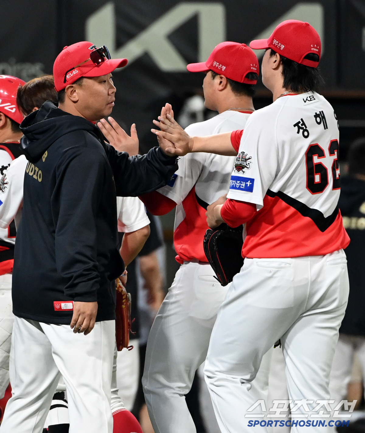 13일 광주KIA챔피언스필드에서 열린 롯데와 KIA의 경기, KIA가 4대1로 승리했다. 이범호 감독과 기쁨을 나누는 정해영의 모습. 광주=허상욱 기자wook@sportschosun.com